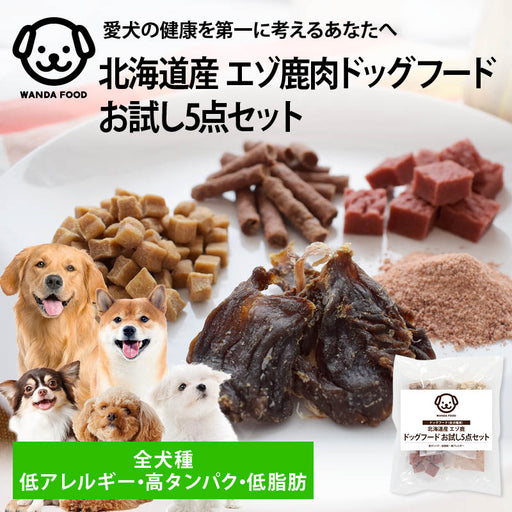 前田家 ワンダフード 国産 低アレルギー エゾ鹿 食べ比べ お試し5点セット 北海道産 ジビエ 鹿肉 ドッグフード 高タンパク 低脂肪 低カロリー EPA α-リノレン酸 全犬種 全年齢 シニア 成犬 小型犬 中型犬 大型犬 ヘルシー ダイエット 送料無料