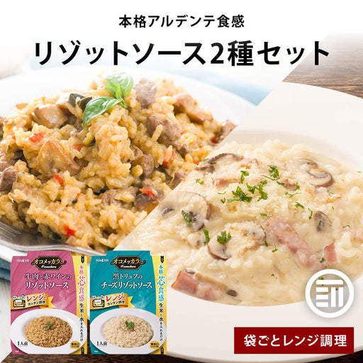 ハチ食品 オコメッカラ リゾットソース2種セット 牛肉と赤ワイン 黒トリュフとチーズ レンジで本格アルデンテ グルメ レンジ調理 簡単調理 時短 レトルト Hachi 常温 一人暮らし ワイン メール便 送料無料 前田家 MAEDAYA