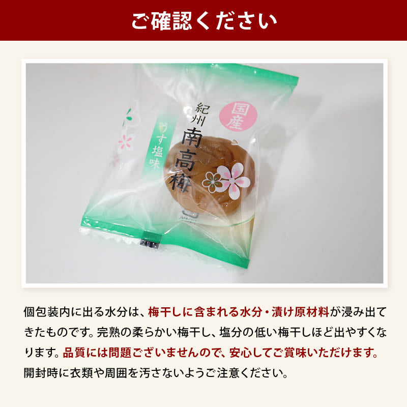 Domestically produced, low-salt, pickled plums, 90g, Kishu Nanko plums, lightly salted, 6% salt, Wakayama, Kishu, individually wrapped, pack, pickled plums, umeboshi, for preventing summer fatigue, heat stroke, and supplementation