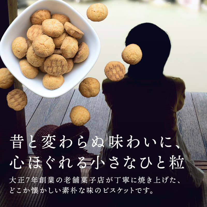 大正7年創業の老舗菓子店が丁寧に焼き上げた、素朴な味のビスケット。