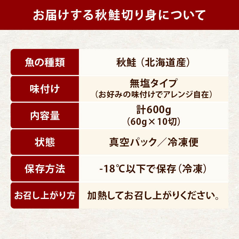 北海道産 秋鮭 無塩 骨なし 600g (60g x10切) 国産 鮭 さけ サケ ストック 簡単調理 ホイル焼き フライ ムニエル 冷凍 骨取り 骨抜き 切り身 シーパラダイス 交洋 送料無料料 前田家 MAE