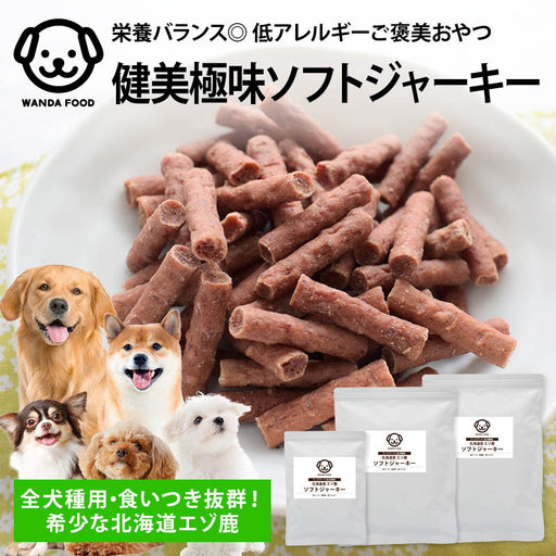 前田家 ワンダフード 国産 低アレルギー エゾ鹿 ソフト ジャーキー 全犬種 全年齢 北海道 ジビエ 鹿肉 ドッグフード 高タンパク 低脂肪 低カロリー 着色料無添加 EPA α-リノレン酸 大型犬 中型犬 小型犬 ペット シニア 成犬 ヘルシー ダイエット
