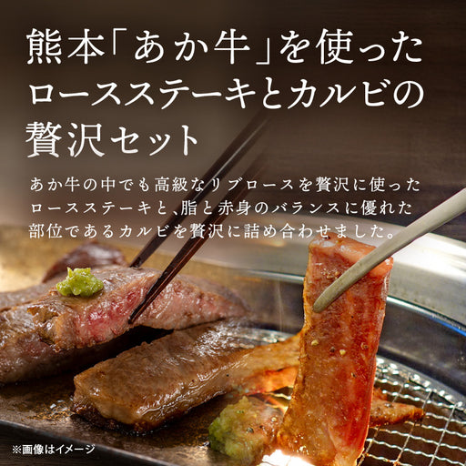 肉工房三協 熊本 あか牛 ロースステーキ (200gx2枚) & カルビ 焼肉用 (400g) セット 冷凍 焼肉 バーベキュー リブロース ロース ステーキ 和牛 熊本和牛 赤牛 ギフト 前田家 送料無料 MAEDAYA